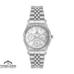 Бренд: Beverly Hills Polo Club Боја: Сребрена, бисерно бела Материјал на ремче: Не рѓосувачки челик Материјал на часовник: Не рѓосувачки челик Форма на часовник: Круг Механизам: Кварцен Тип на механизам: Аналоген Календар: Ден, датум Отпорност на вода : 3 ATM Пол: Женски Стил: Класика, за секој ден Гаранција: 2 години