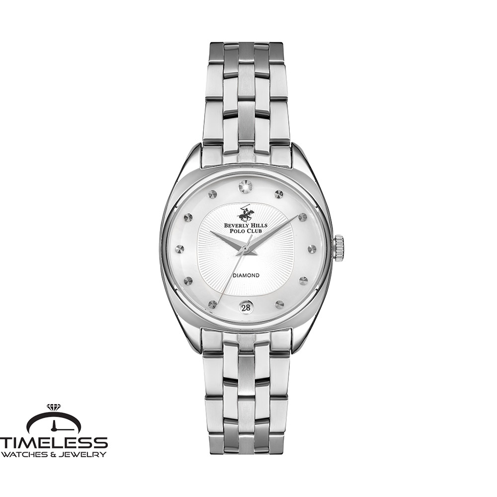 Бренд: Beverly Hills Polo Club Боја: Сребрена Материјал на ремче: Не рѓосувачки челик Материјал на часовник: Не рѓосувачки челик, кристали Форма на часовник: Круг Механизам: Кварцен Тип на механизам: Аналоген Каленндар: Датум Отпорност на вода : 3 ATM Пол: Женски Стил: Класика, за секој ден Гаранција: 2 години