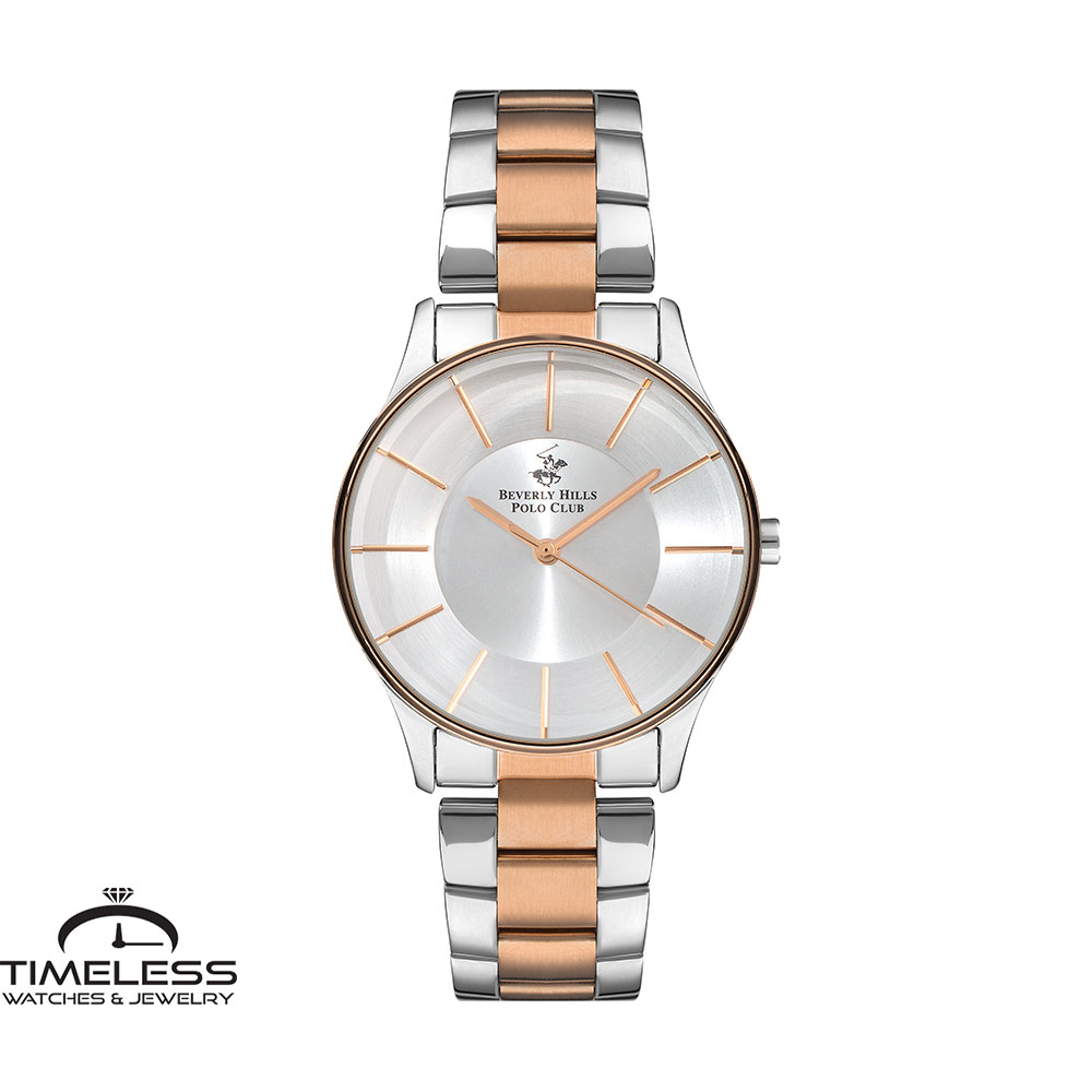 Бренд: Beverly Hills Polo Club Боја: Сребрена, розово златна Материјал на ремче: Не рѓосувачки челик Материјал на часовник: Не рѓосувачки челик Форма на часовник: Круг Механизам: Кварцен Тип на механизам: Аналоген Отпорност на вода : 3 ATM Пол: Женски Стил: Класика, за секој ден Гаранција: 2 години