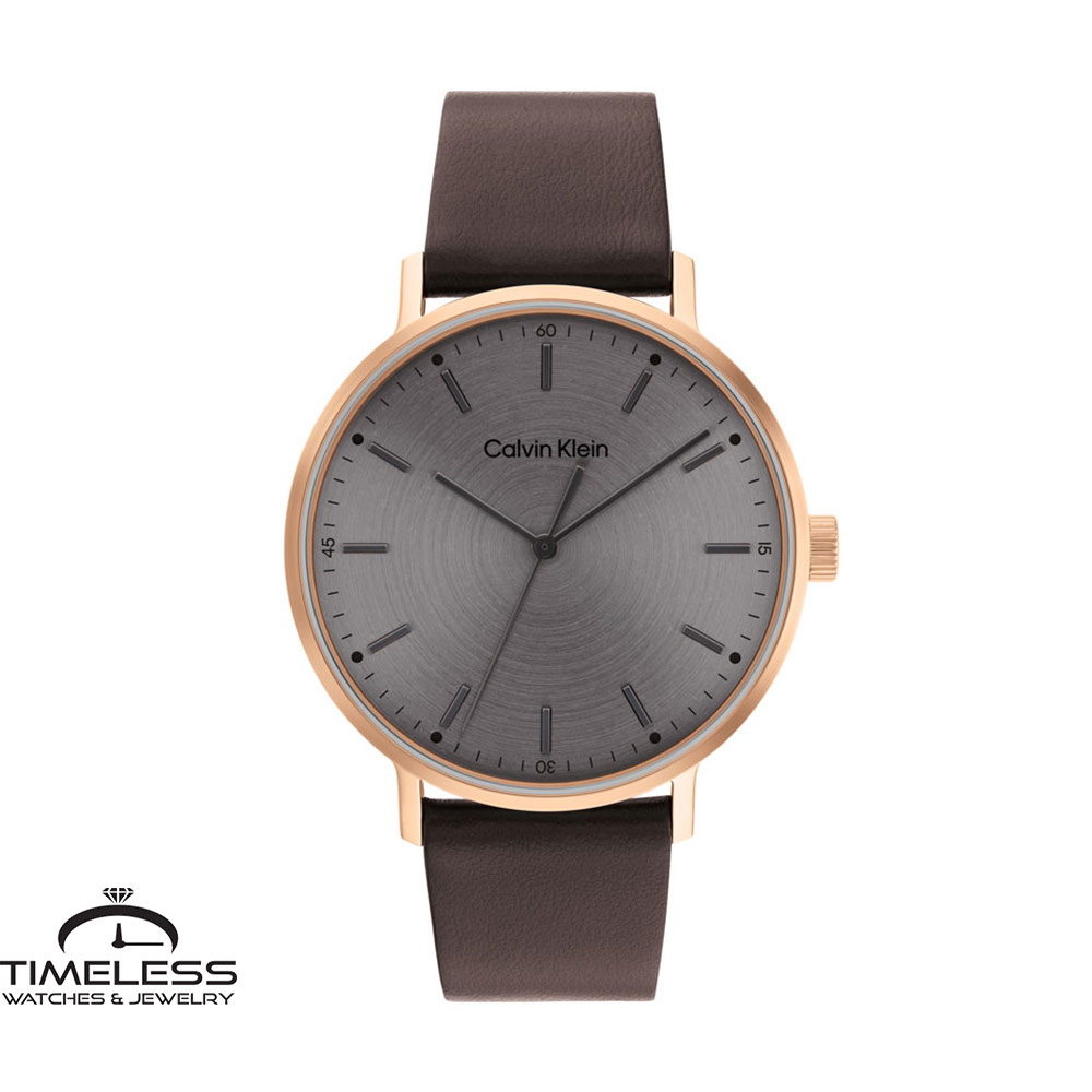 Бренд: Calvin Klein Боја: Кафеава, сива, златна Материјал на ремче: Кожа Дијаметар: 42 мм Материјал на часовник: Не рѓосувачки челик Форма на часовник: Круг Механизам: Кварцен Тип на механизам: Аналоген Отпорност на вода : 3 ATM Пол: Машки Стил: Класика Гаранција: 2 години