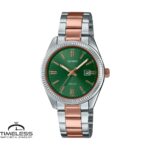 Бренд: Casio Боја: Сребрена, розово златна, зелена Материјал на ремче: Не рѓосувачки челик Ширина на ремче: 15 мм Дијаметар: 30 мм Материјал на часовник: Не рѓосувачки челик Форма на часовник: Круг Механизам: Кварцен Тип на механизам: Аналоген Календар: Датум Отпорност на вода: 5 ATM Пол: Женски Стил: Класика, за секој ден Гаранција: 2 години