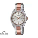 Бренд: Casio Боја: Сребрена, розово златна Материјал на ремче: Не рѓосувачки челик Ширина на ремче: 15 мм Дијаметар: 30 мм Материјал на часовник: Не рѓосувачки челик Форма на часовник: Круг Механизам: Кварцен Тип на механизам: Аналоген Календар: Датум Отпорност на вода: 5 ATM Пол: Женски Стил: Класика, за секој ден Гаранција: 2 години