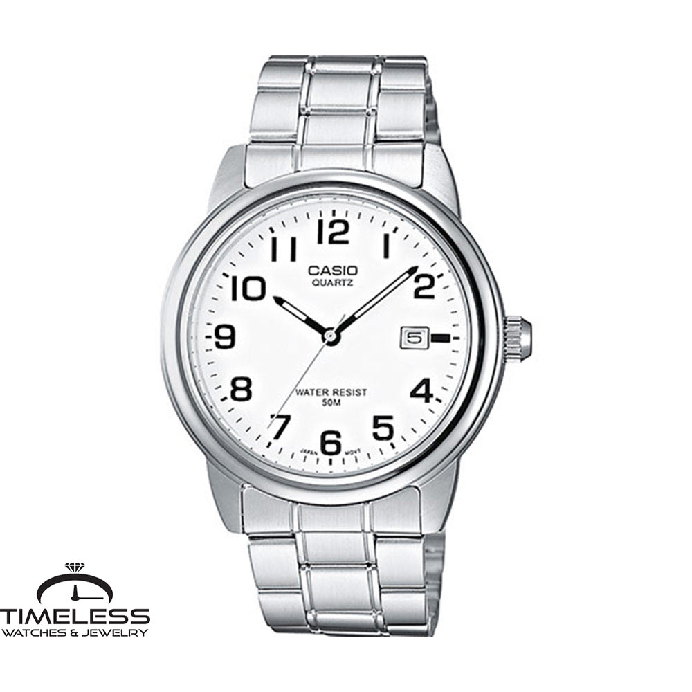 Бренд: Casio Боја: Сребрен со бела позадина Материјал на ремче: Не рѓосувачки челик Ширина на ремче: 18 мм Дијаметар: 39 мм Материјал на часовник: Не рѓосувачки челик Форма на часовник: Круг Механизам: Кварцен Тип на механизам: Аналоген Календар: Дневен Отпорност на вода : 5 ATM Пол: Машки Стил: Класика, за секој ден Гаранција: 2 години