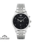 Бренд: Emporio Armani Боја: Сребрена, црна Материјал на ремче: Не рѓосувачки челик Ширина на ремче: 22 мм Дијаметар: 43 мм Материјал на часовник: Не рѓосувачки челик Форма на часовник: Круг Механизам: Кварцен Тип на механизам: Аналоген Календар: Датум Отпорност на вода : 5 ATM Пол: Машки Стил: Класика, за секој ден Гаранција: 2 години