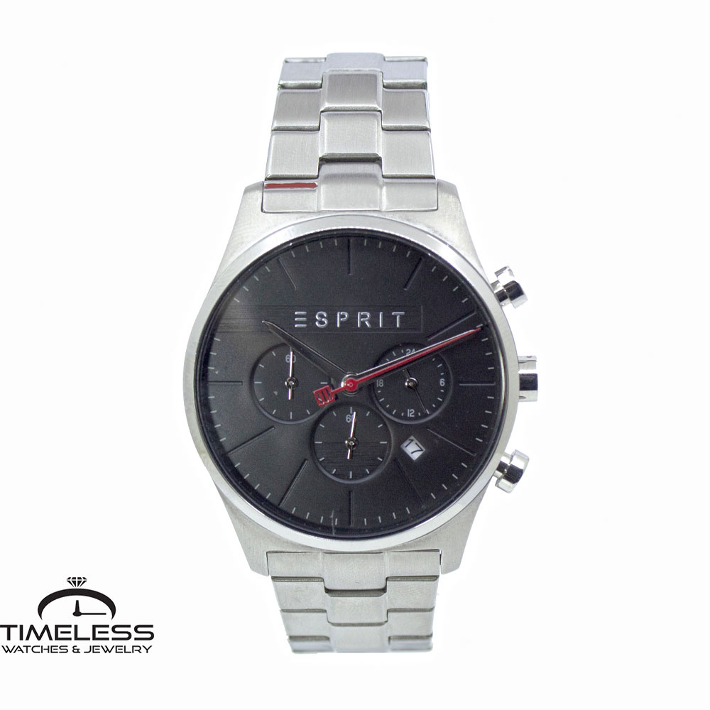 Бренд: Esprit Боја: Сребрен со црна позадина Материјал на ремче: Не рѓосувачки челик Ширина на ремче: 20 мм Дијаметар: 40 мм Материјал на часовник: Не рѓосувачки челик Форма на часовник: Круг Механизам: Кварцен Тип на механизам: Аналоген Календар: Дневен Отпорност на вода : 3 ATM Пол: Машки Стил: Класика, за секој ден Гаранција: 2 години