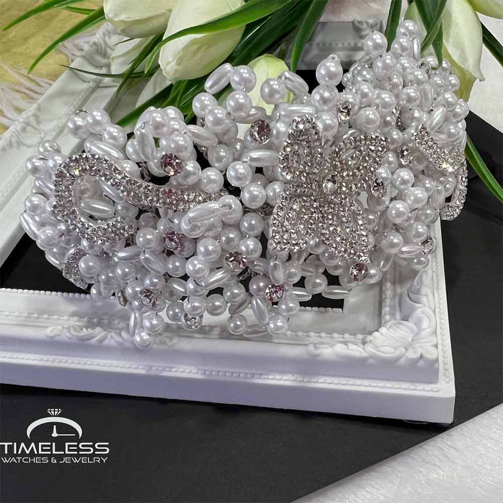Материјал: Стаклени кристали, перли и циркони комбинирани со метални делови