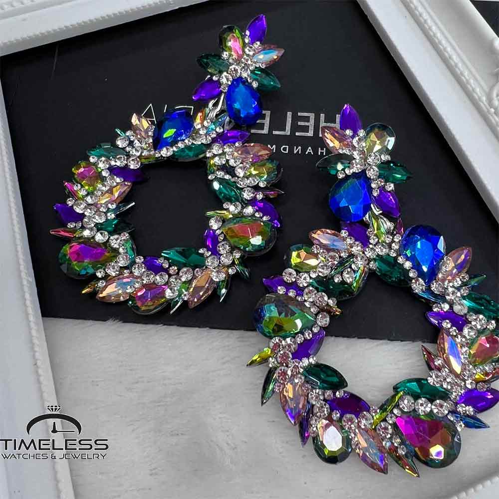 Материјал: Стаклени кристали, перли и циркони комбинирани со метални делови
