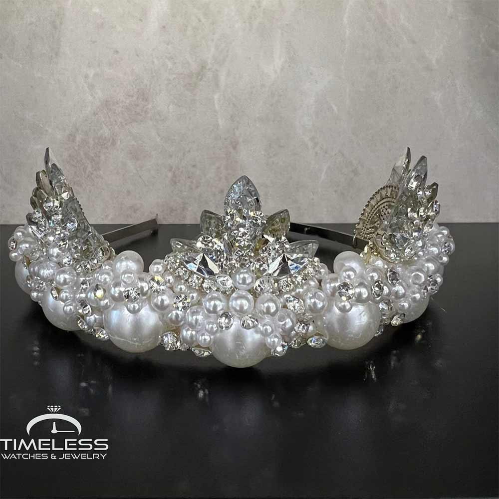 Материјал: Стаклени кристали, перли и циркони комбинирани со метални делови