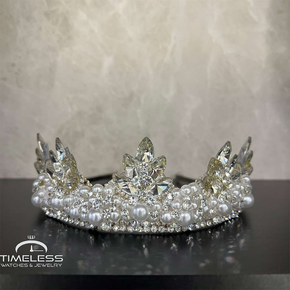 Материјал: Стаклени кристали, перли и циркони комбинирани со метални делови