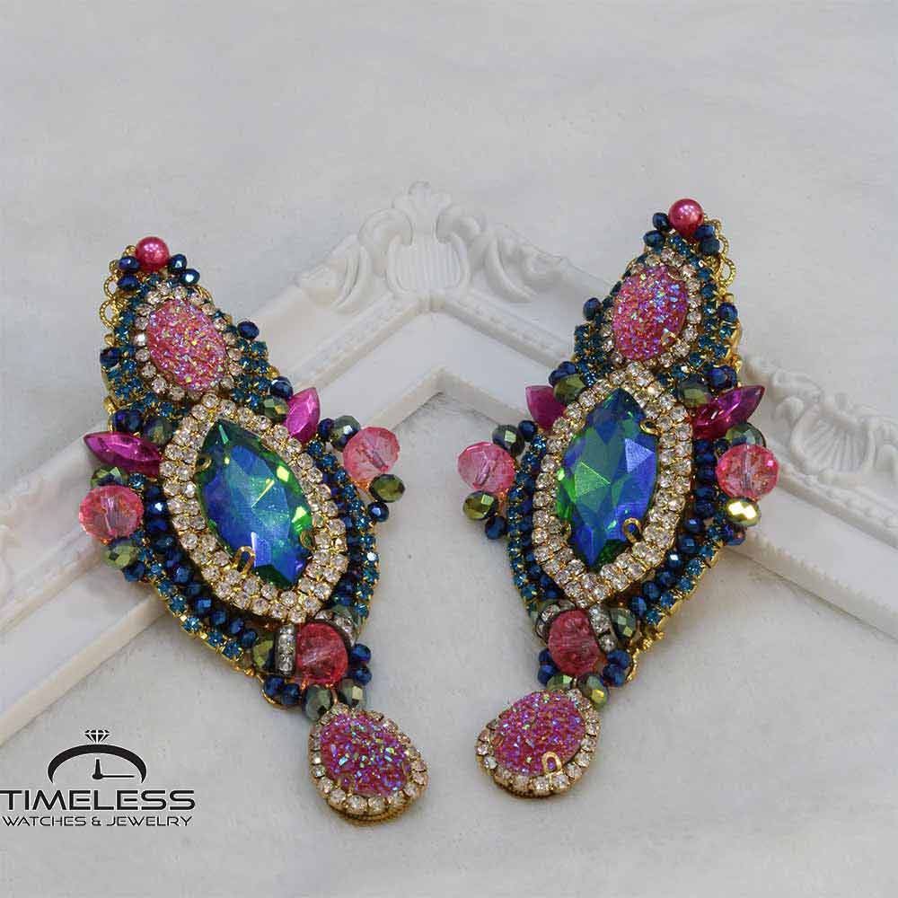 Материјал: Стаклени кристали, перли и циркони комбинирани со метални делови