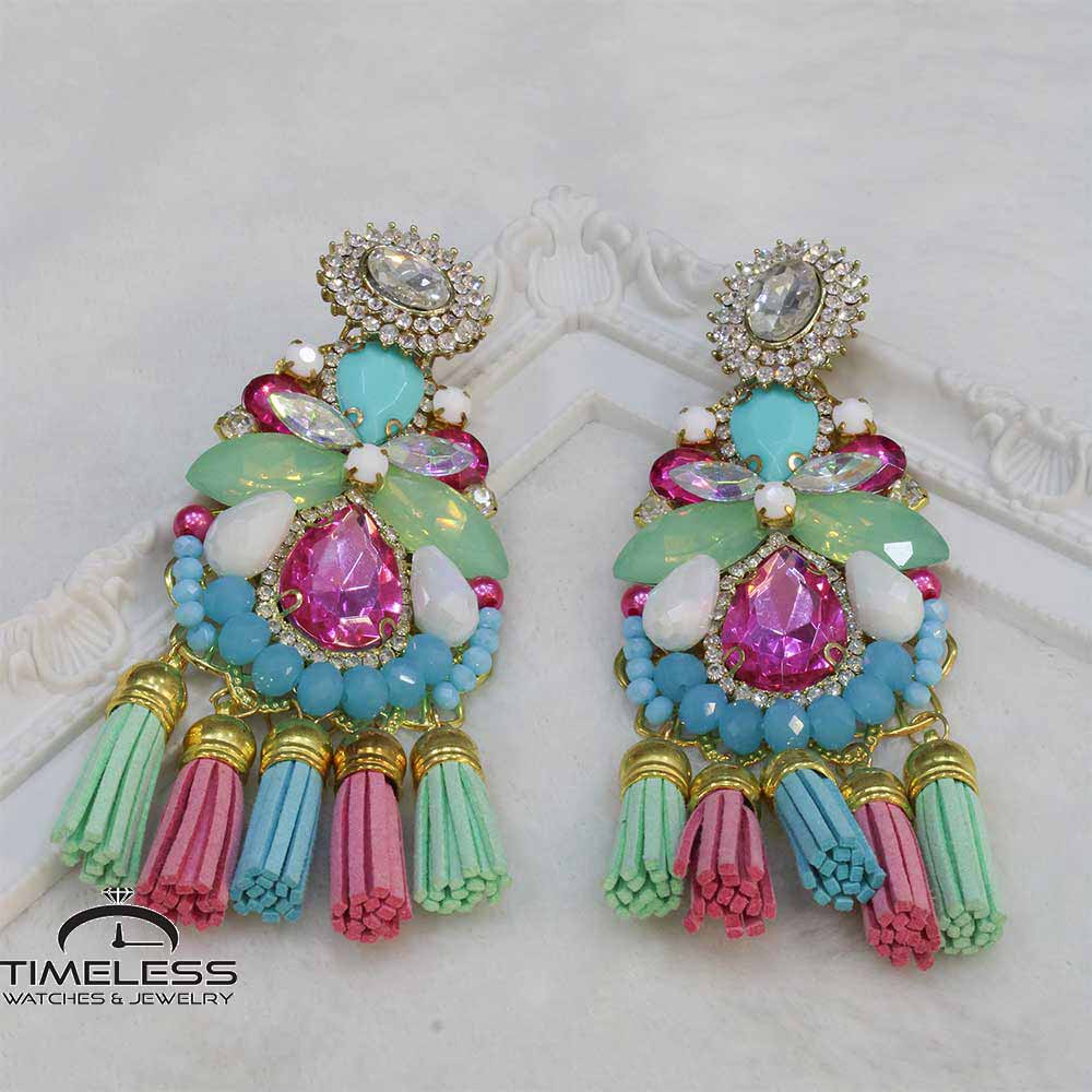 Материјал: Стаклени кристали, перли и циркони комбинирани со метални делови