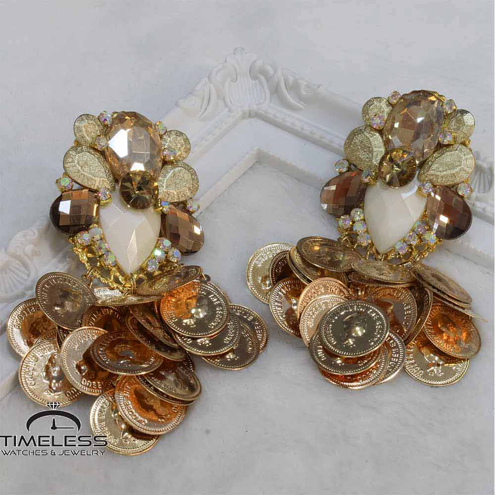 Материјал: Стаклени кристали, перли и циркони комбинирани со метални делови