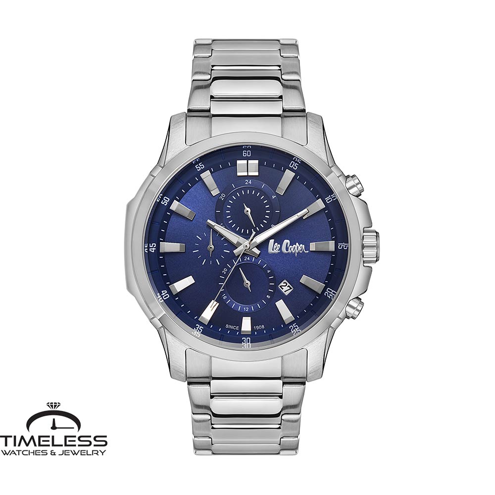 Бренд: Lee Cooper Боја: Сребрена, сина Материјал на ремче: Не рѓосувачки челик Материјал на часовник: Не рѓосувачки челик Форма на часовник: Круг Механизам: Кварцен Тип на механизам: Аналоген Календар: Датум Отпорност на вода : 3 ATM Пол: Машки Стил: Класика, за секој ден Гаранција: 2 години