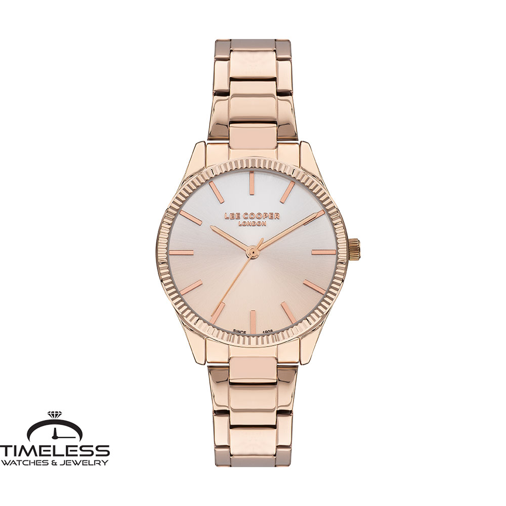 Бренд: Lee Cooper Боја: Розово златна Материјал на ремче: Не рѓосувачки челик Материјал на часовник: Не рѓосувачки челик Форма на часовник: Круг Механизам: Кварцен Тип на механизам: Аналоген Отпорност на вода : 3 ATM Пол: Женски Стил: Класика, за секој ден Гаранција: 2 години