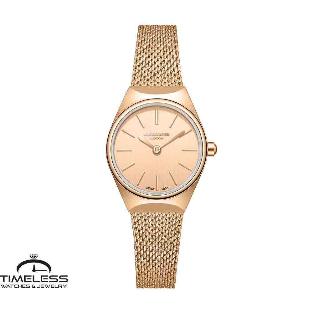 Бренд: Lee Cooper Боја: Розово златна Материјал на ремче: Не рѓосувачки челик Материјал на часовник: Не рѓосувачки челик Форма на часовник: Круг Механизам: Кварцен Тип на механизам: Аналоген Отпорност на вода : 3 ATM Пол: Женски Стил: Класика, за секој ден Гаранција: 2 години