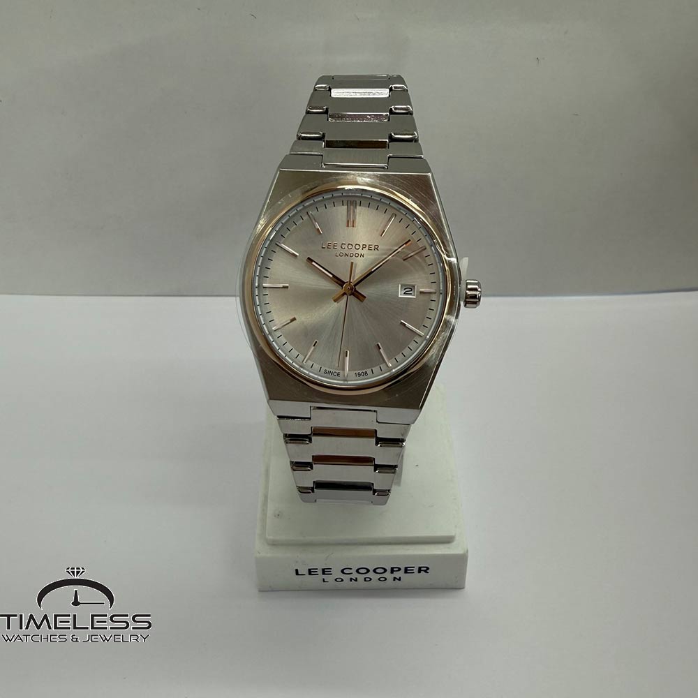 Бренд: Lee Cooper Боја: Сребрена Материјал на ремче: Не рѓосувачки челик Материјал на часовник: Не рѓосувачки челик Форма на часовник: Круг Механизам: Кварцен Тип на механизам: Аналоген Календар: Датум Отпорност на вода : 3 ATM Пол: Женски Стил: Класика, за секој ден Гаранција: 2 години