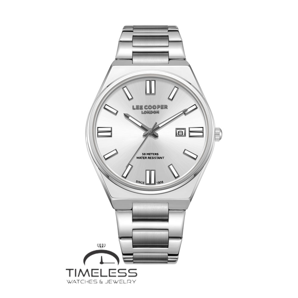 Бренд: Lee Cooper Боја: Црна Материјал на ремче: Не рѓосувачки челик Материјал на часовник: Не рѓосувачки челик Форма на часовник: Круг Механизам: Кварцен Тип на механизам: Аналоген Календар: Ден, датум Отпорност на вода : 3 ATM Пол: Машки Стил: Класика, за секој ден Гаранција: 2 години