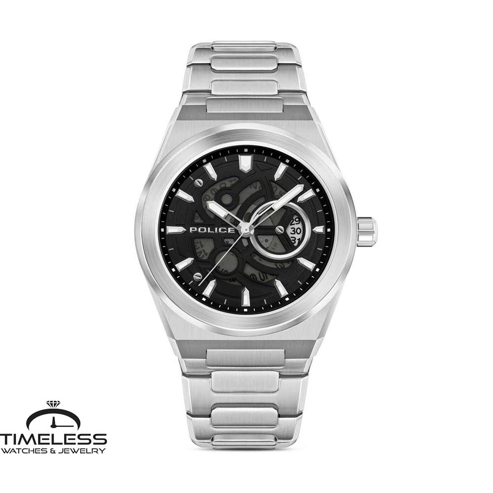 Бренд: Police Боја: Сребрена, црна Материјал на ремче: Не рѓосувачки челик Дијаметар: 45 мм Материјал на часовник: Не рѓосувачки челик Форма на часовник: Круг Механизам: Кварцен Тип на механизам: Аналоген Календар: Датум Отпорност на вода : 5 ATM Пол: Машки Стил: Класика, за секој ден Гаранција: 2 години