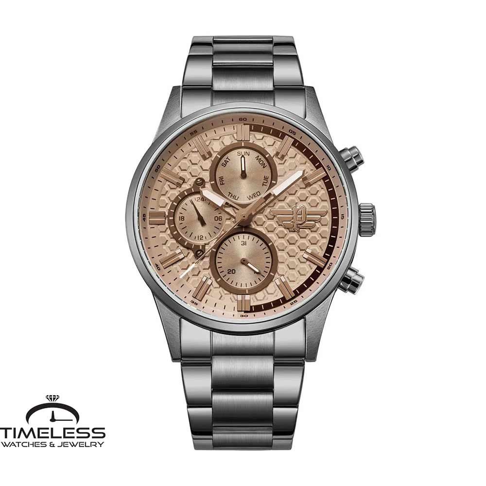 Бренд: Police Боја: Сребрена, бронза Материјал на ремче: Не рѓосувачки челик Дијаметар: 45 мм Материјал на часовник: Не рѓосувачки челик Форма на часовник: Круг Механизам: Кварцен Тип на механизам: Аналоген Календар: Ден, датум Отпорност на вода : 5 ATM Пол: Машки Стил: Класика, за секој ден Гаранција: 2 години