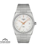 Бренд: Tissot PRX Боја: Сива, розово златна Материјал на ремче: Не рѓосувачки челик Ширина на ремче: 25 мм Дијаметар: 40 мм Материјал на часовник: Не рѓосувачки челик Механизам: Кварцен Тип на механизам: Аналоген Календар: Датум Отпорност на вода : 10 ATM Пол: Машки Стил: Класика, за секој ден Гаранција: 2 години