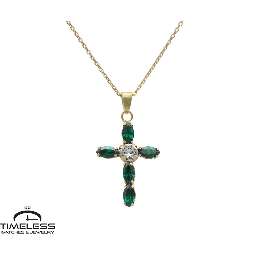Бренд: Victoria Cruz Боја: Златна, зелена Материјал: Сребро со позлата, Swarovski кристали Должина на ланче: Прилагодлива 400 мм – 450 мм Стил: Елегантен Пол: Женски Гаранција: 1 година